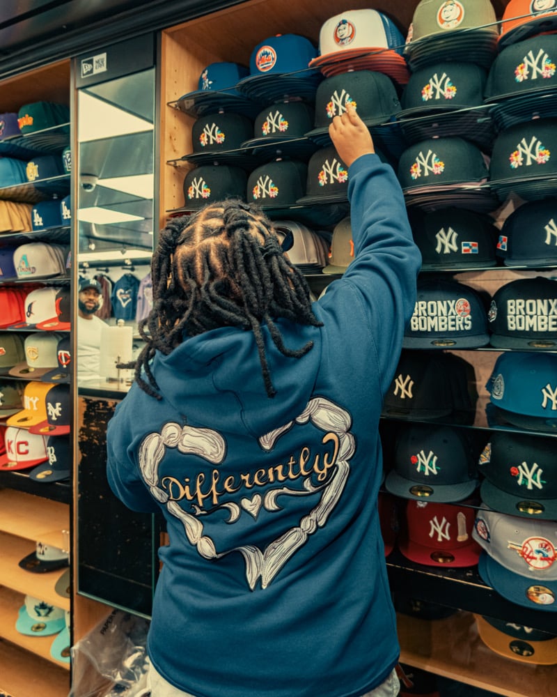 Blue Bamboo Earring Hoodie. Large Earring embroidery in the back of the hoodie.
