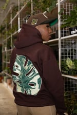 Brown Hoodie with Monstera Leaf embroidery. The Leaf glows in the dark.