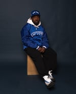 Royal Blue Nylon Windbreaker with Uptown embroidery. Perfect way to represent.